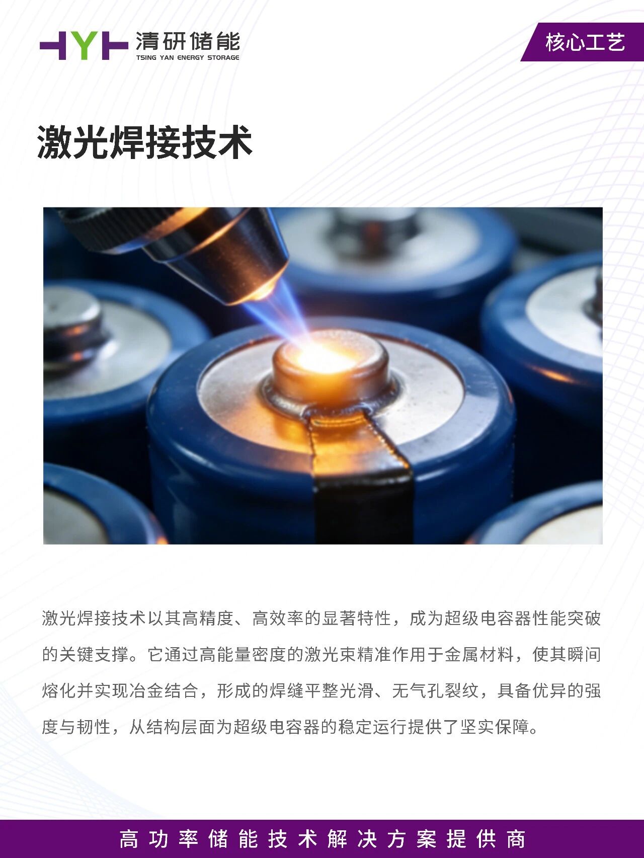 激光焊接技术以其高精度、高效率的显著特性,成为超级电容器性能突破的关键支撑。它通过高能量密度的激光束精准作用于金属材料,使其瞬间熔化并实现冶金结合,形成的焊缝平整光滑、无气孔裂纹,具备优异的强度与韧性,从结构层面为超级电容器的稳定运行提供了坚实保障。